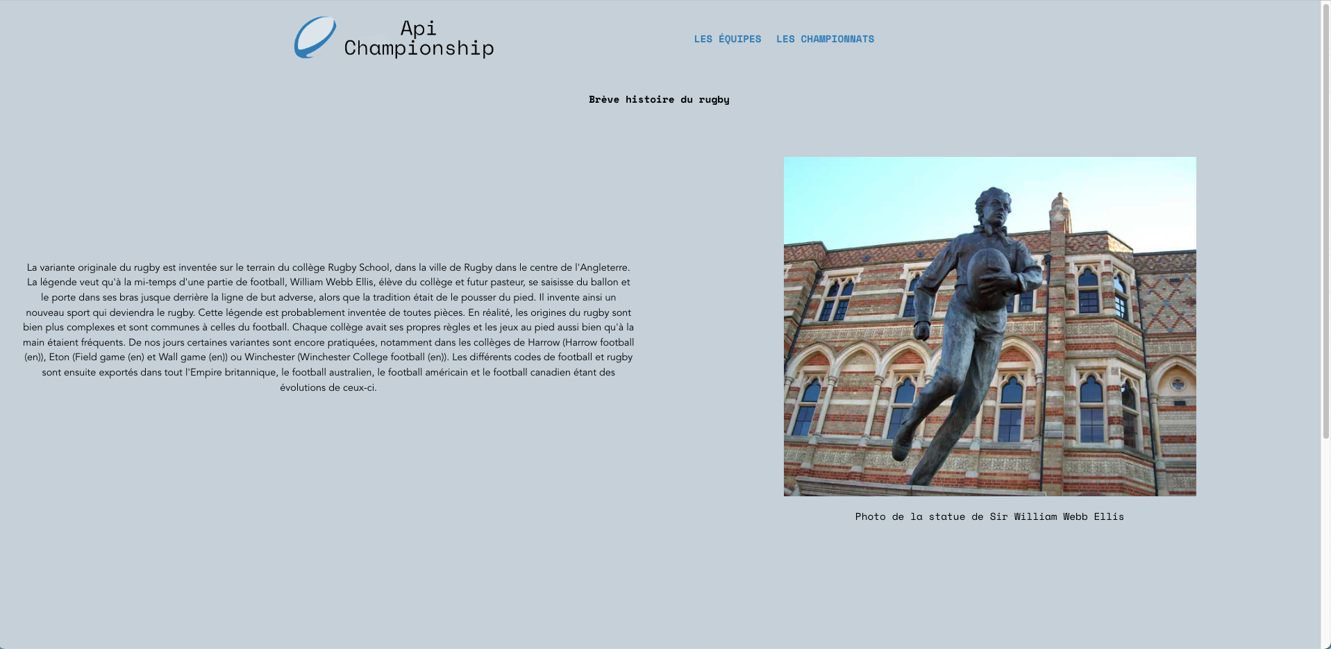 Interface api_championship Interface de mon proejt de fin d'étude en Vue.js.